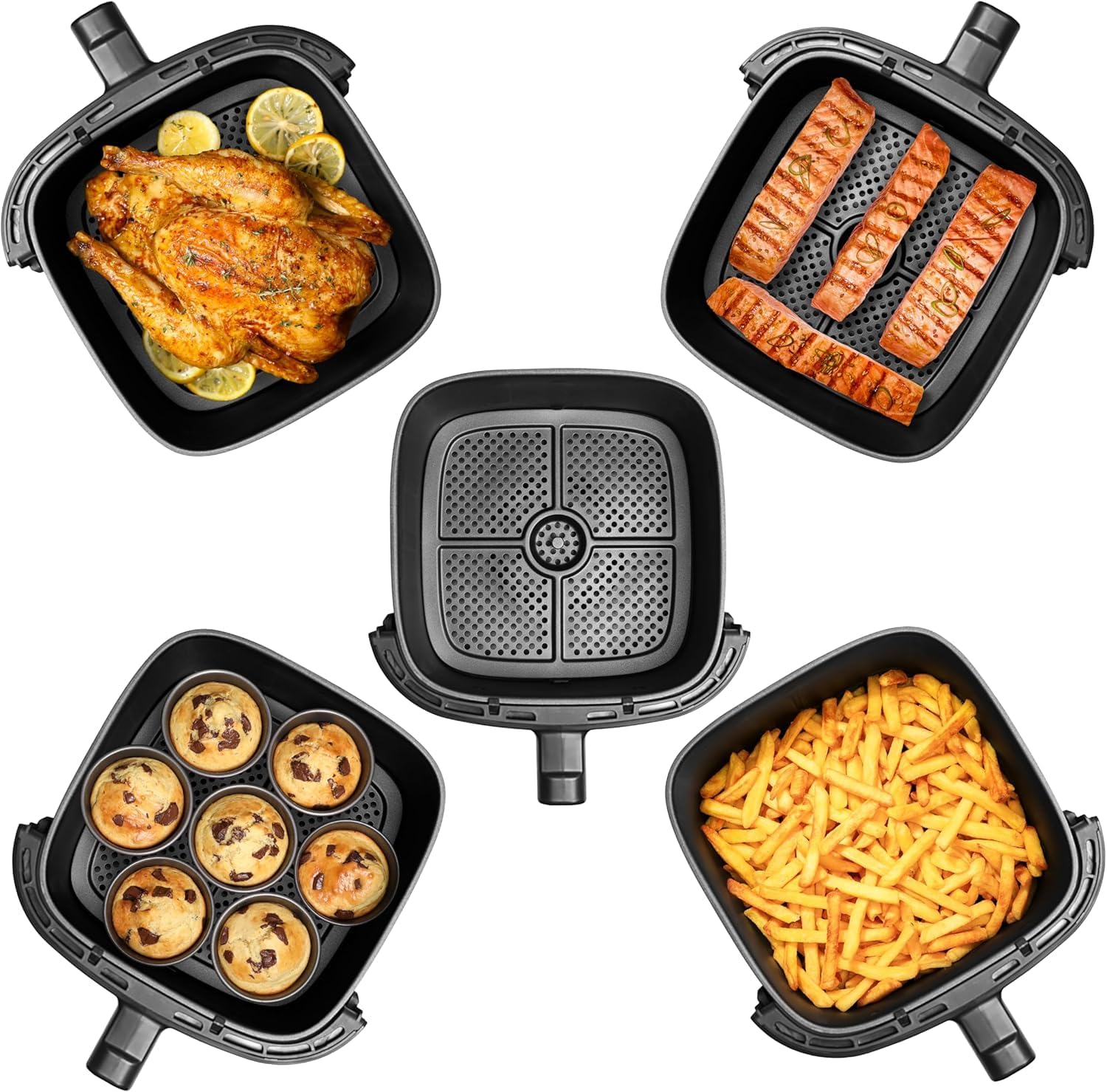 تعدد الاستخدامات: 10 برامج طهي مسبقة الإعداد (البطاطس والدجاج وشرائح اللحم والأسماك والحلوى والبيتزا والناجتس والخضروات والروبيان ولحم الخنزير المقدد) لطهي الأطباق اللذيذة في كل مرة.